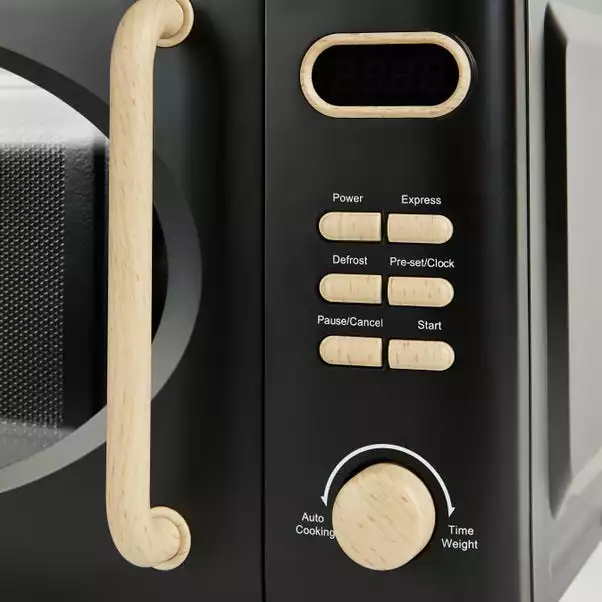 Designed with a sleek black colourway, this microwave boasts a generous 20 litre capacity with a high 700W power output. Ideal for larger family households, this microwave features a digital clock with a 60 minute timer which you can set to cook and reheat your meals, and a defrost setting suitable for all meal types and times of eating. Crafted with an easy to remove 24.5cm glass turntable, this microwave features a child lock for added peace of mind.