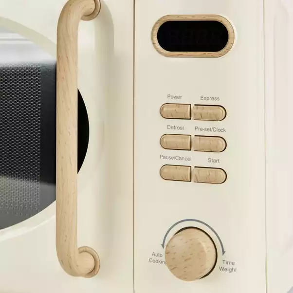 Designed with a stylish cream colourway, this microwave boasts a generous 20 litre capacity with a high 700W power output. Ideal for larger family households, this microwave features a digital clock with a 60 minute timer which you can set to cook and reheat your meals, and a defrost setting suitable for all meal types and times of eating. Crafted with an easy to remove 24.5cm glass turntable, this microwave features a child lock for added peace of mind.