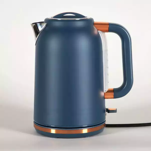 Featuring a 1.7 litre capacity and a 360 degree cordless swivel base, this matt navy jug kettle comes complete with modern copper detailing and power on indicator ideal for low light situations.