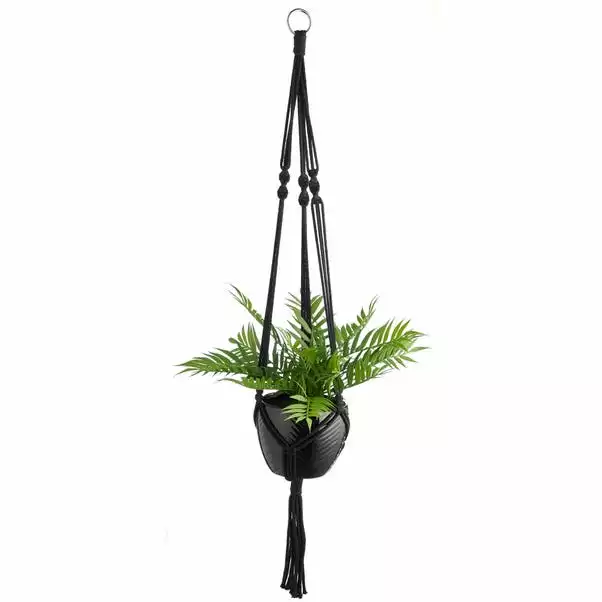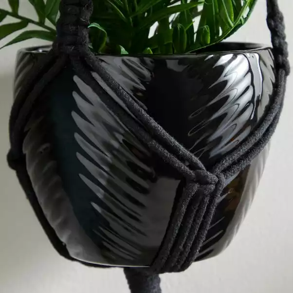 Dunelm Black Hanging Ceramic Pot With Macrame