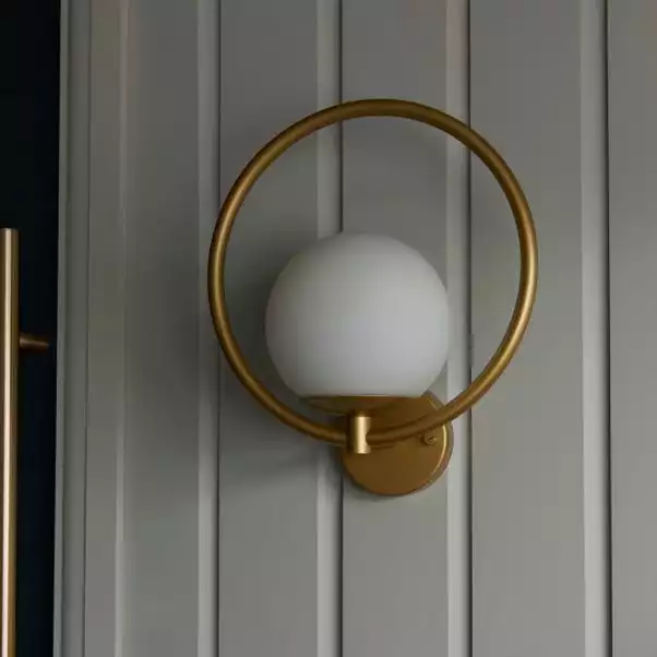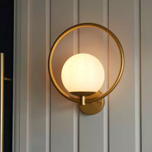 Perfect for lighting up your garden, patio, or even your bathroom, the Fort Halo wall light offers a modern, versatile design that would suit a range of décor styles. This wall light is IP44 rated and features a stunning satin gold effect finish, paired with a stunning opal glass spherical shade.