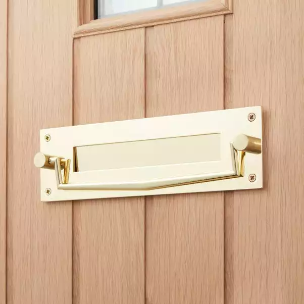 A perfect two in one! This door knocker has a classic gold finish in the shape of a letter box. Crafted from durable metal, this door knocker is easy to fit onto your door and wipe clean. Please not that fittings are not included with this door knocker.