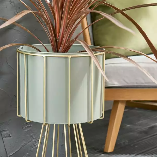 The Grey Plant Pot on Gold Frame is a stylish and unique addition to your garden that offers a sturdy and attractive option for displaying plants in your outdoor spaces.