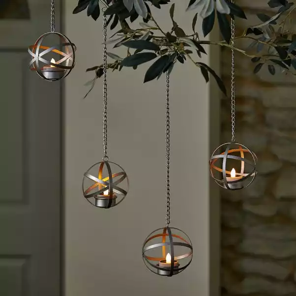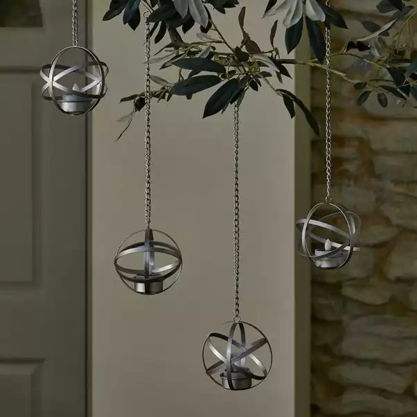 Dunelm Pack Of 4 Silver LED Hanging Solar Tea Lights