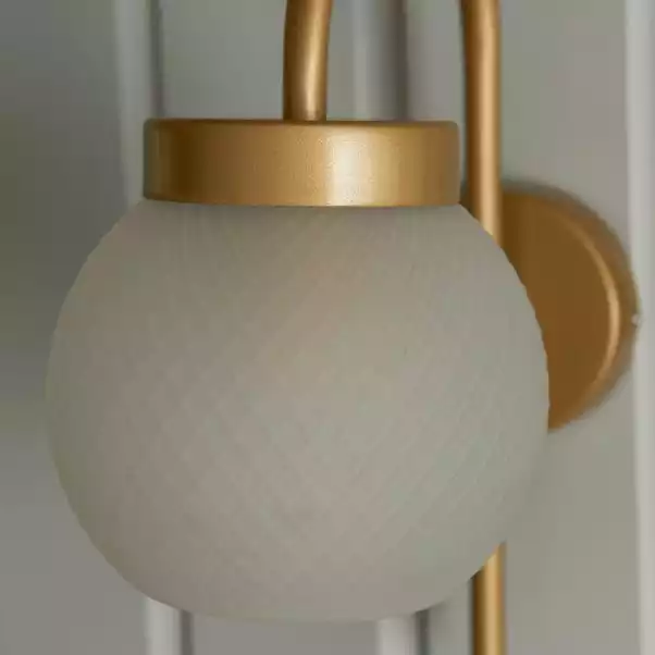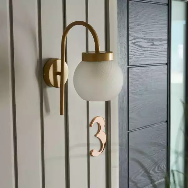 Boasting a beautiful mdoern retro styling, the Ruthy wall light would add a classy touch to any outdoor space. this wall light is finished in a satin gold colour, and paired with a textured, frosted glass shade and features an IP44 rating.