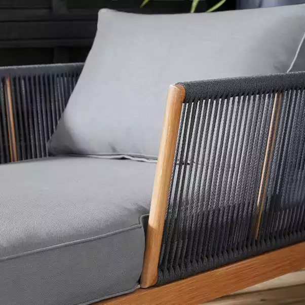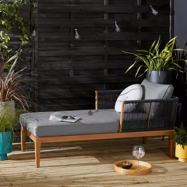 Add a touch of sophisticated simplicity to your backyard with this lounger. Featuring intricately braided rope, this contemporary lounger comes with padded cushions for added comfort and style. Made from 100% recycled polyester, the cushions are soft and comfortable.