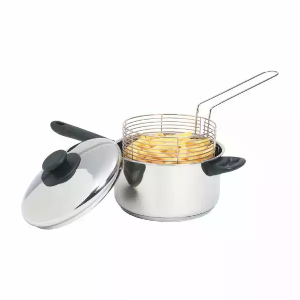 Ideal for frying a variety of foods, this stainless steel fryer has an integrated lift out wire basket. This fryer can be used on all heat sources including induction and it also features an integrated pan rest holder on the chip basket for simple and convenient cooking.