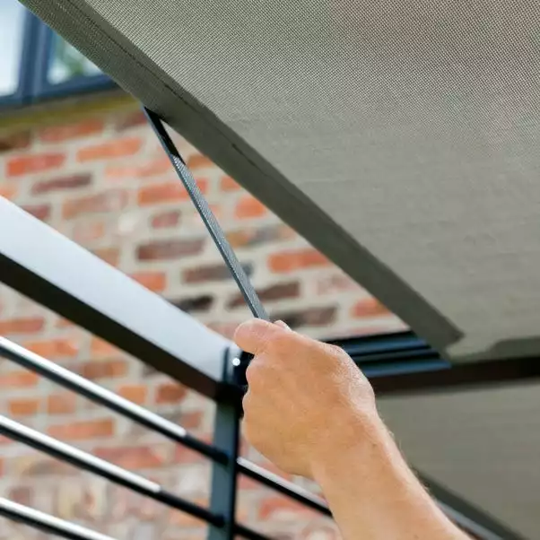This stylish grey sliding gazebo is perfect for keeping you shaded this summer. With a durable aluminium frame and a sliding textaline panel roof, this gazebo is long-lasting and durable. With a square design and cross beams for design, this gazebo is sure to look good in any outdoor space.