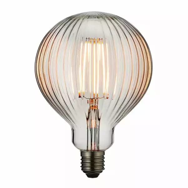 The perfect light accessory, this clear ribbed glass energy saving lamp has subtle light output, without compromising on style for that perfect authentic filament light effect. The perfect addition to exposed light designs for today’s stylish homes, creating less glare whilst still achieving that on trend bar, hotel look.