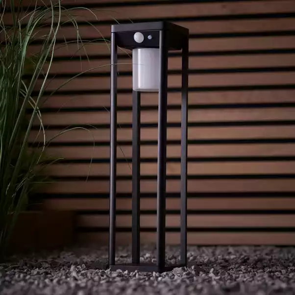 Light up your walkway or garden path with the Clayton 40cm Outdoor Solar PIR Floor Light, constructed from robust corrosive resistant aluminium with a sleek and stylish design. This modern post style lighting comes complete with a built in PIR and Photocell sensor as well as solar powered functionality and a IP44 rating to ensure outdoor suitability. Encapsulated inside the solid structure of the textured black aluminium sits a subtle white diffuser for a comfortable glow and can be combined with other items of outdoor lighting in the Clayton range for a synchronised and coordinated look.