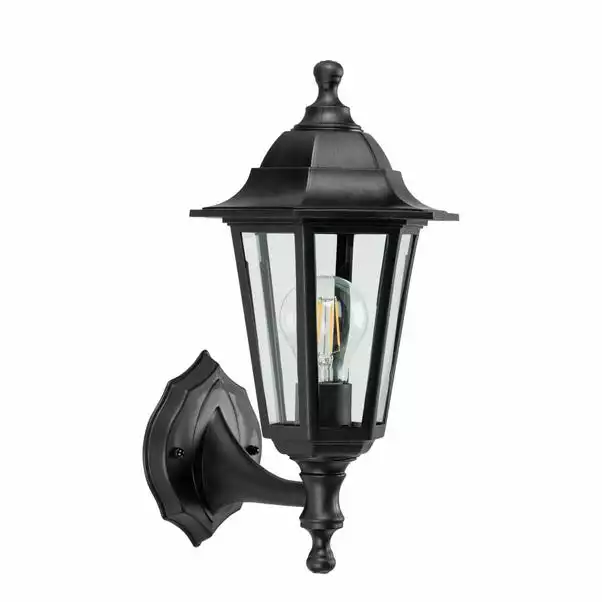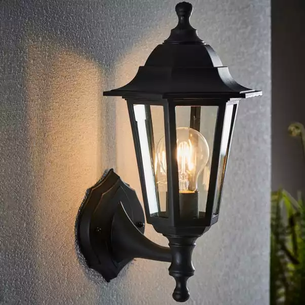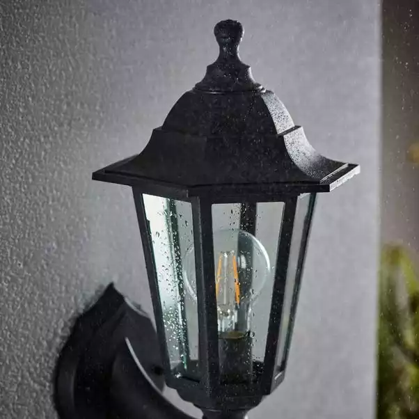 Featuring a traditional vintage styling, the Iola outdoor wall light is made using a rust proof, polycarbonate material, finished in a stylish matt black colour. Perfect for pairing with filament LED lamps for a more traditional styled look, this fitting can be converted to either an up or down light fixing and features an IP44 rating, making it suitable for a wide range of outdoor spaces.