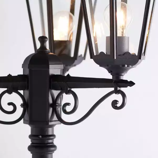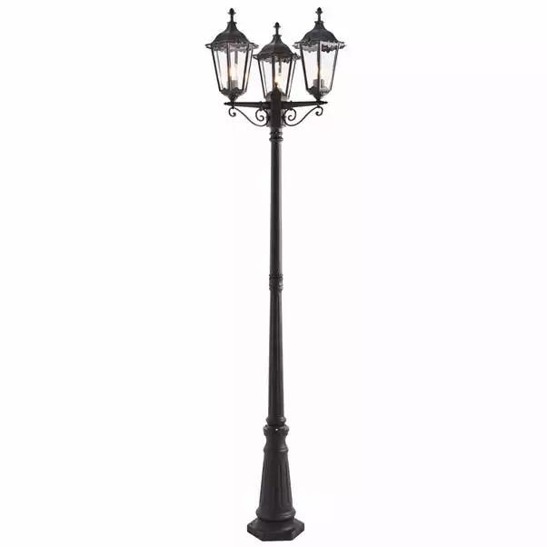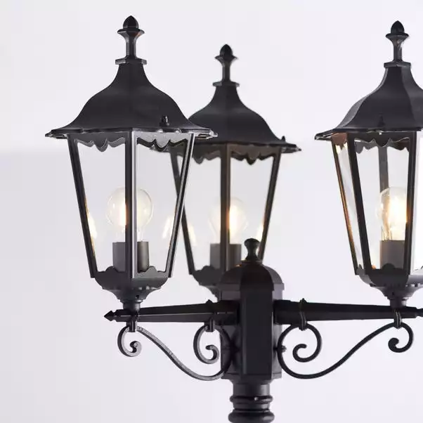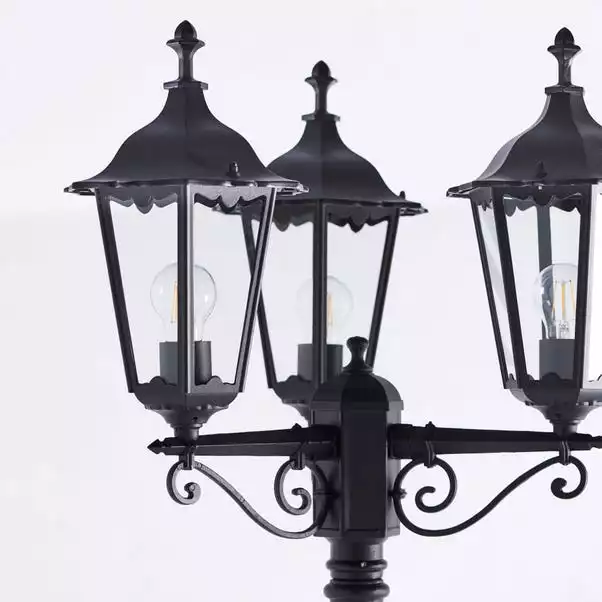 Boasting a timeless, traditional design, the Trenton outdoor 3 light Lamppost is a great way to light up your garden or driveway, featuring a traditional design finished in matt black painted die cast aluminium with clear glass panels and stunning decorative details. Combine with a filament LED bulb to create a stylish, traditional look. This light features an IP44 rating making it suitable for a wide range of outdoor spaces and is perfect for combining with other items in the range for a stylish, coordinated look.