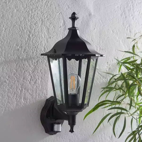 Add a traditional and timeless coach lantern style wall light to your garden with Trenton Outdoor Light range. Safe for outdoor use with a IP44 rating the Trenton Outdoor PIR Wall Light comes complete with built in Photocell & PIR sensors for excellent accessibility and can also be operated with mains function. Made from die cast aluminium alloy, this piece of lighting is robust and brings a classy appearance with a clear glass shade, matt black finish and can be combined with other items from the Trenton Outdoor light range for a synchronised and coordinated look
