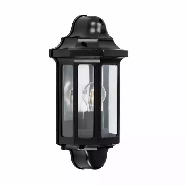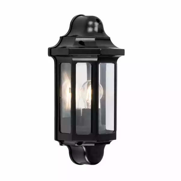 Light up the exterior walls of your house with this water resistant wall light in a traditional style. Suitable for outdoor and bathroom use with a IP44 rating, this dimmable light with a satin black finish has a classic yet durable style.